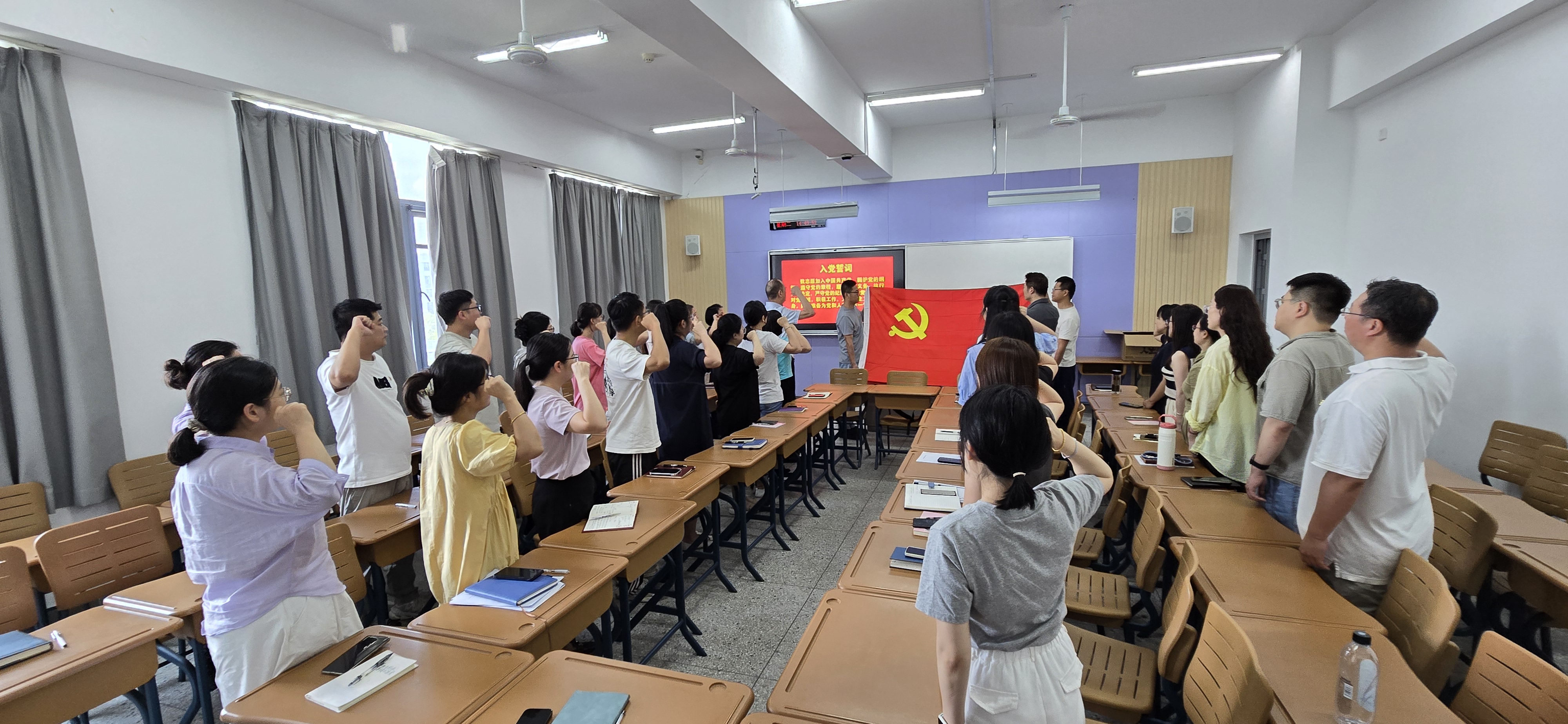 7月1日,伟德国际victor1946党总支在勤学楼320室开展“重温入党誓词”主题党日活动。党总支书记力志领誓,全体党员挺拔肃立,高举右拳,面向党旗庄严宣誓。全体党员重温入党誓词,不忘入党初心,牢记“为党育人、为国育才”使命,在学校的高质量发展中勇挑大梁,充分发挥先锋模范作用。