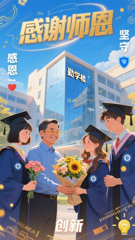 本次教师节AI海报制作竞赛不仅为师生提供了展示创意与技术的平台,更以AIGC为创新载体,深化了“尊师重教”的校园文化。宣传部、公共教学部和数字文创学院提供了重要支持,为活动的顺利进行提供了坚实保障。