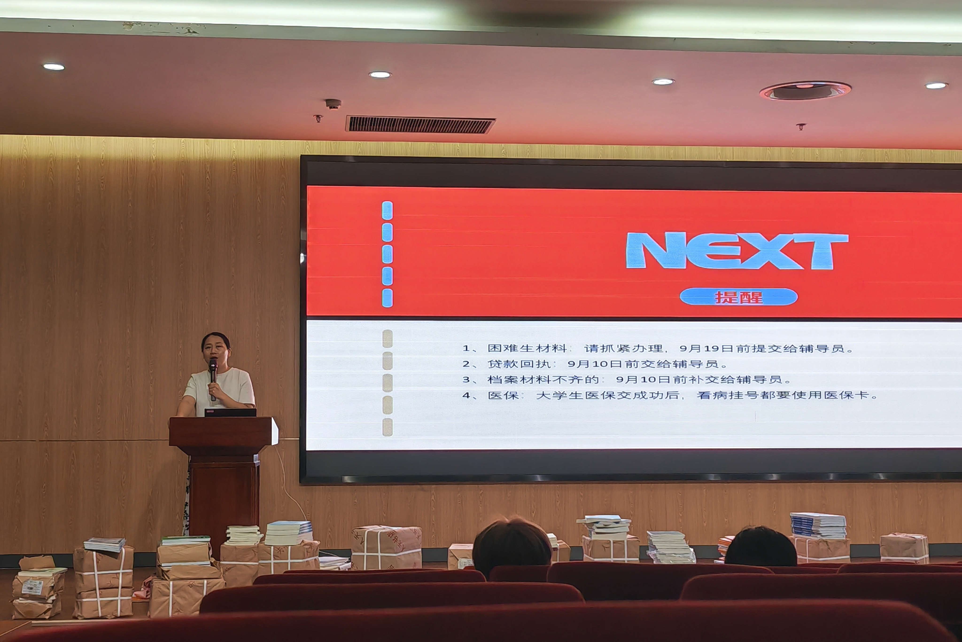 班会开篇以“师生初见”为核心,各班级辅导员率先进行自我介绍,结合自身经历讲述大学学习生活的成长故事,瞬间拉近与新生的距离。同时,辅导员们分享了个人负责的工作领域、办公地点与联系方式,确保从班会开始就建立起“有问必答、有需必应”的高效沟通渠道,让新生刚入校园就感受到“找到组织”的归属感。