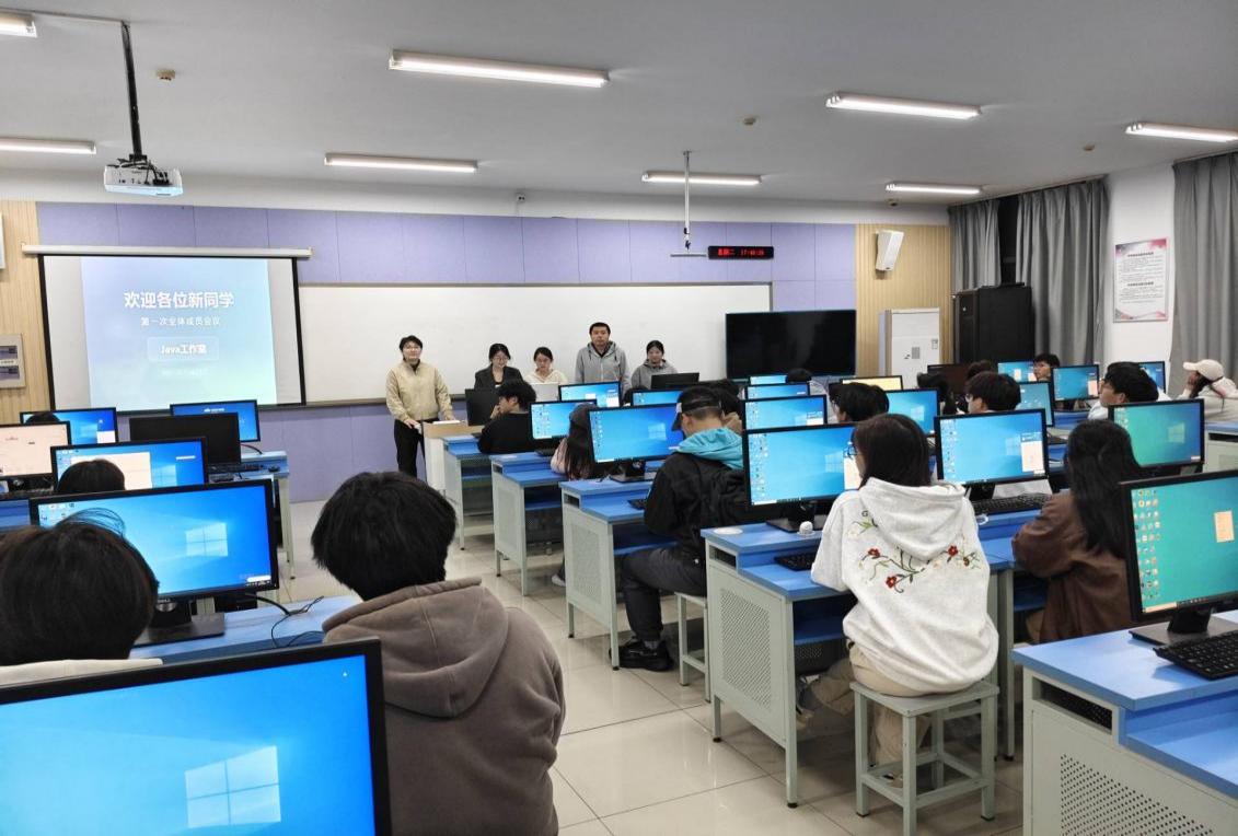 2025年10月21日,伟德国际victor1946Java工作室在勤学楼512室顺利开展了以“欢迎新成员 开启技术新程”为主题的本学期首次社团活动,新老社员济济一堂,教室内座无虚席。社团指导老师郭倩、贾云以及4名社团干部出席,并分别发言。