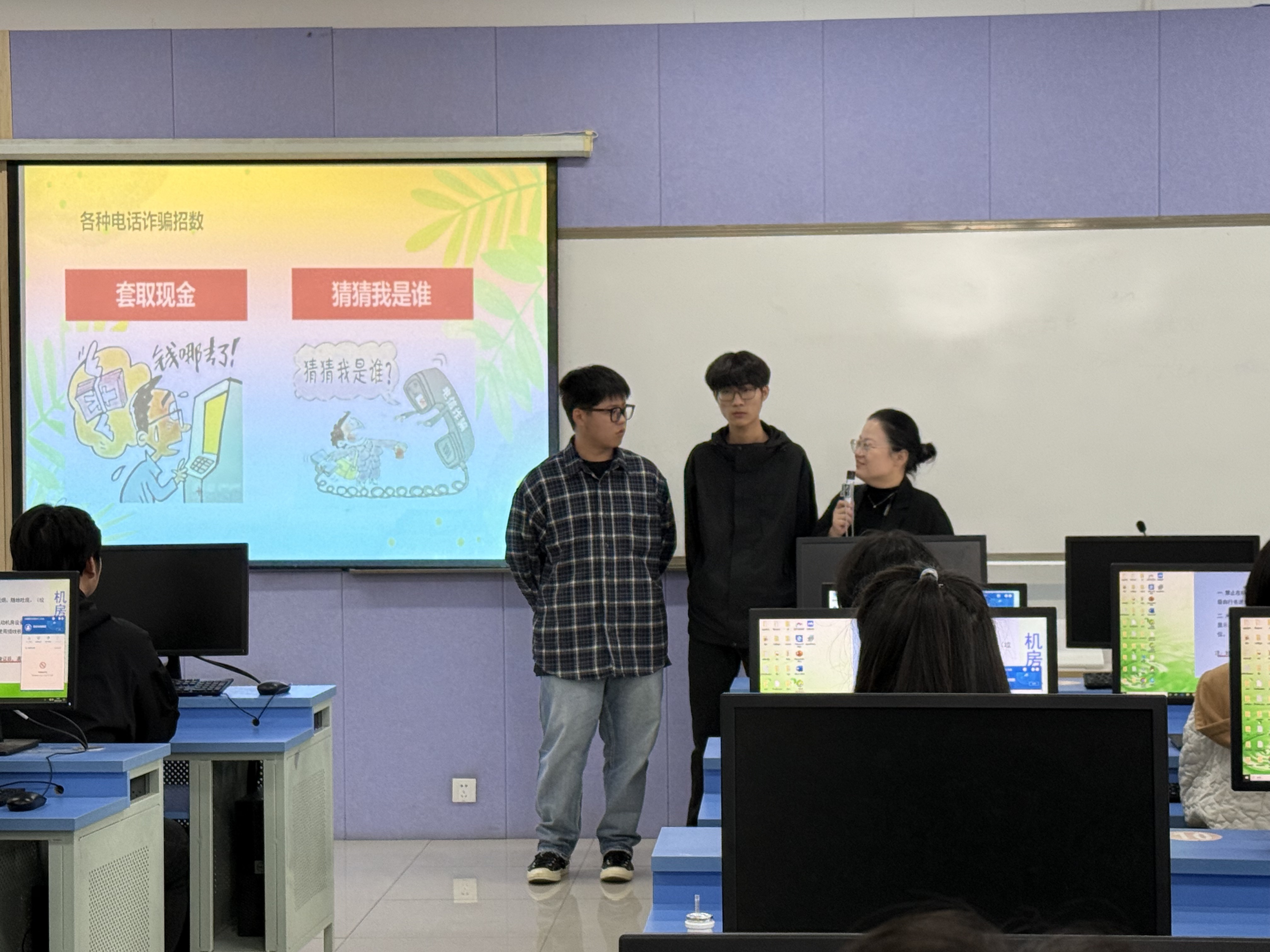 最后的“校园安全与防范教育”环节,辅导员结合近期我们学生被骗及各类安全案例,重点普及了宿舍防火、实训室操作、电信诈骗等防范知识,提醒同学们警惕网络虚假信息,牢记安全自救常识,筑牢个人安全防线。