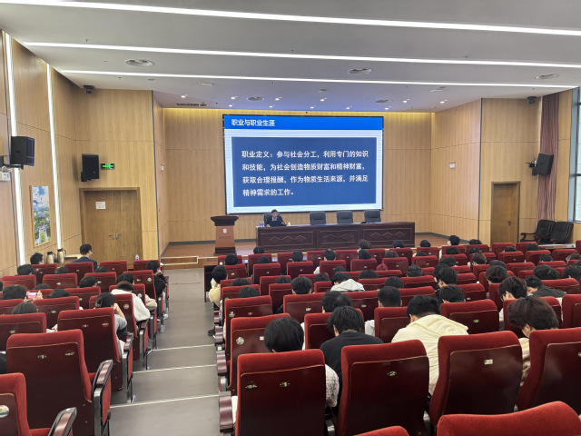 11月4日下午,伟德国际victor1946在办公楼一楼报告厅举办职业生涯规划专题讲座。本次讲座特邀南京晓庄学院杨明老师主讲,主题为“职规赛背景下的高校职业生涯教育”,学院2024、2025级200余名学生代表参加讲座。