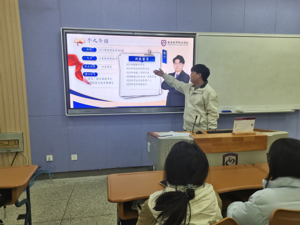 分享会上,四位学长结合自身求学与职业探索经历,从不同维度展开分享。张荣翔学长聚焦专业深耕与行业认知,详细拆解了软件技术领域的就业趋势与能力要求,鼓励同学们夯实专业基础、拓宽知识边界;金文豪学长从个人层次和同学们分享自己准备升学考试中的学习资料与学习方法;23级学长王杰、陈宁作为 “过来人”,分享的内容更贴近在校生实际需求。王杰学长结合备考与求职双线准备的经历,给出了时间管理与目标设定的实用方法;陈宁学长则聚焦竞赛规划,鼓励同学们在迷茫中保持探索热情,在尝试中积累成长动能。